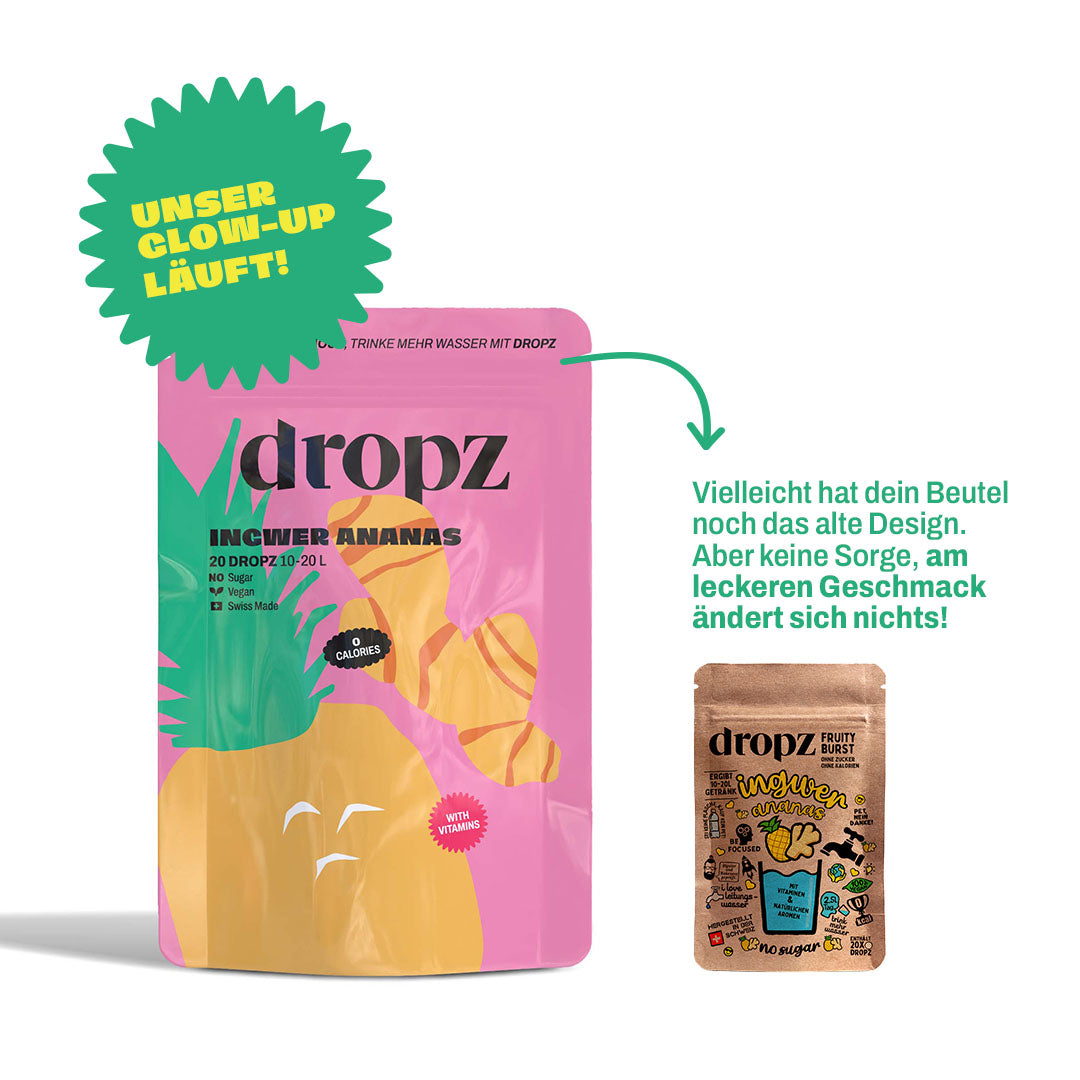 Ein Dropz reicht für 250–500 ml Wasser — je nachdem, wie intensiv du den Geschmack haben möchtest.